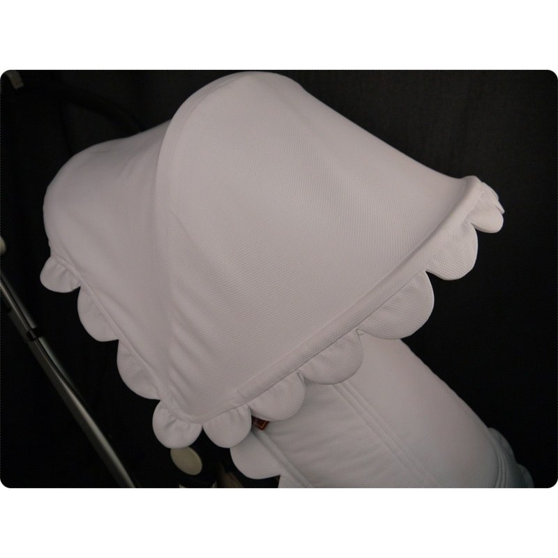 Original Capota confeccionada en su exterior e interior en tejido de piqué nido. Va adornada toda alrededor con ondas de tela doble de piqué nido.