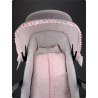 Este bonito saco lígero esta confeccionado en su interior de piqué con bodoques bordados y su exterior es de piqué liso al tono de los bodoques, el centro va cerrado con cremallera y lleva para adornar un plisado al tono. En la parte superior lleva dos botones con dos presillas para que se quede más cerradito como tipo capucha y así que el bebe vaya mas recogido.