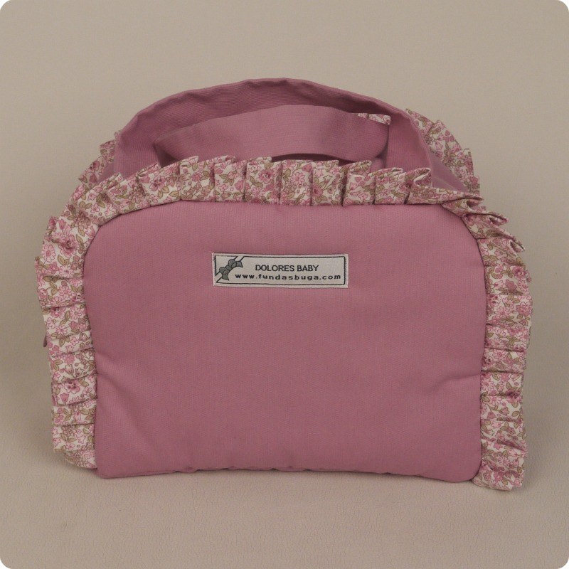 Este bonito neceser es de viyella estampado en flores, liso con un plisado alrededor y las asas al tono.