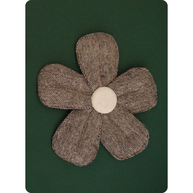 Broche-Flor Grande Modelo Casita de Chocolate confeccionado a mano en patchwork de de tejido tipo cheviot color chocolate coordinado con la colección.
