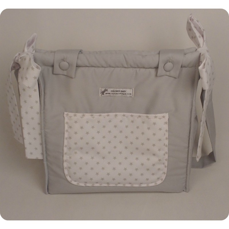 El bolso panera modelo Lucas está confeccionado en su exterior en piqué de nido liso, y su bolsillo exterior es de piqué de canutillo estampado de estrellitas.