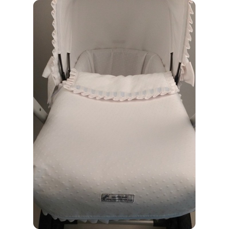 Su embozo va trabajado con pasacintas y cinta de piqué en color (rosa, beige, gris, celeste o marino)