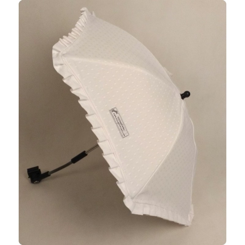Confeccionada en tejido de otomán de fondo blanco con bodoques bordados en blanco.