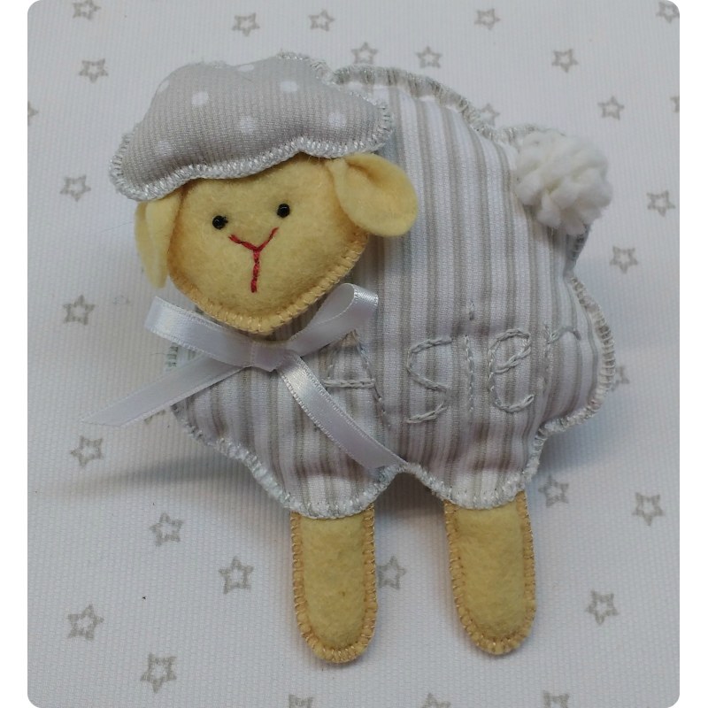 Broche con forma de perrito, confeccionado a mano en patchwork de de piqué nido en color coordinado con la colección.