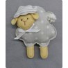Broche con forma de ovejita, confeccionado a mano en patchwork de de piqué nido en color coordinado con la colección.
