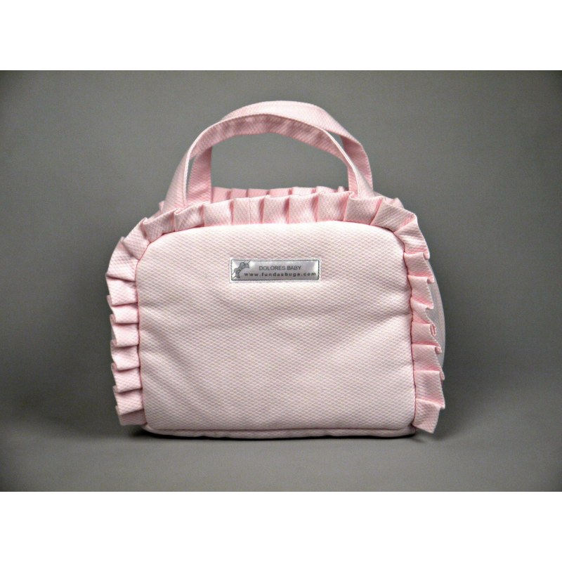 Este bonito neceser es de piqué nido liso con un plisado alrededor y las asas al tono.