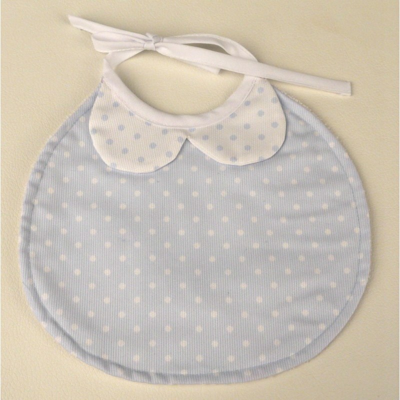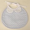 Disponible en fondo rosa, celeste, gris y beige con mota blanca y el cuellecito en fondo blanco con mota rosa, celeste, gris y beige.