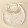 Lleva en la parte posterior una tela de rizo plastificada que lo hace ideal para la dentición, evitando que se moje la ropita.